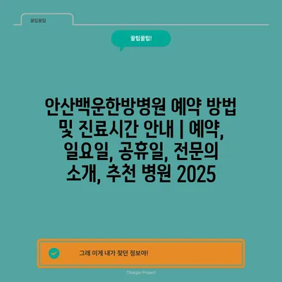 안산백운한방병원 예약 방법 및 진료시간 공지 | 예약, 일요일, 공휴일, 전연락 소개, 추천 병원 2025 안산백운한방병원은 한방 진료를 전문으로 하는 …
