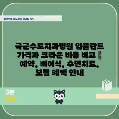 국군수도치과병원 임플란트 가격과 크라운 비용 비교 | 예약, 뼈이식, 수면치료, 보험 혜택 안내