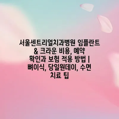 서울센트리얼치과병원에서는 임플란트와 크라운 치료의 비용에 대해 자세히 공지하고 있습니다. 치료에 따른 비용은 개별적인 상태에 따라 달라질 수 있으니, 상담 후 …