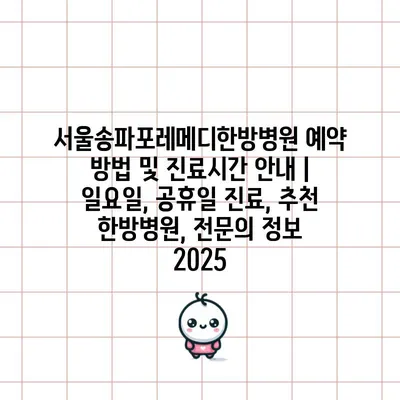 서울송파포레메디한방병원 예약 방법 및 진료시간 안내 | 일요일, 공휴일 진료, 추천 한방병원, 전문의 정보 2025