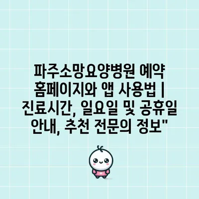 파주소망요양병원 예약 홈페이지와 앱 사용법에 대해 소개합니다. 웹사이트와 모바일 앱을 통해 쉽고 편리하게 예약할 수 있으며, 간편한 사용법으로 많은 환자들에게 …