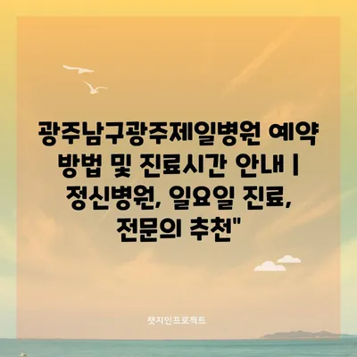 광주남구광주제일병원 예약 방법 및 진료시간 공지에 대해 알아보겠습니다. 정신과 진료가 필요하신 분들께서는 예약을 통해 보다 원활한 서비스를 받을 수 있습니다. …