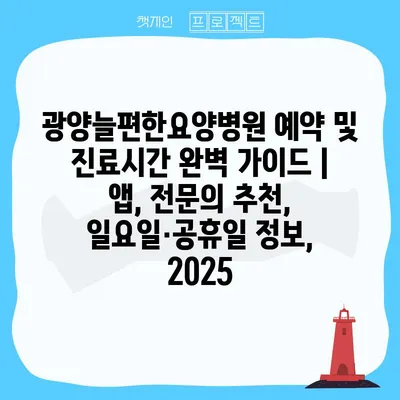 광양늘편한요양병원 예약 및 진료시간 완벽 설명서 | 앱, 전연락 추천, 일요일·공휴일 정보, 2025 광양늘편한요양병원은 편리한 예약 시스템과 전문적인 진료로 많은 …