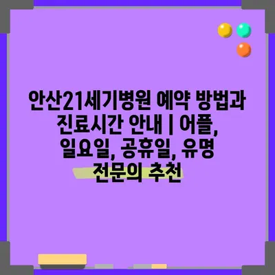 안산21세기병원 예약 방법과 진료시간 공지입니다. 안산21세기병원은 다양한 전문 분야의 진료를 제공하고 있어 많은 환자들이 찾고 있습니다. 예약은 공식 어플리케이션을 통해 …
