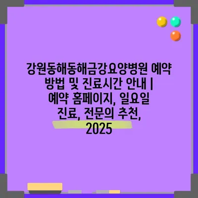 강원동해동해금강요양병원 예약 방법 및 진료시간 공지 | 예약 홈페이지, 일요일 진료, 전연락 추천, 2025 강원동해동해금강요양병원에서는 원활한 진료를 위해 온라인 예약 …