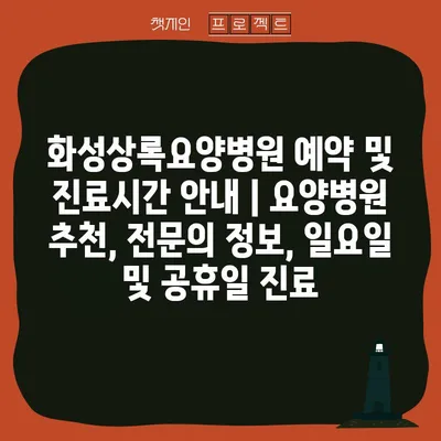 화성상록요양병원 예약 및 진료시간 공지 | 요양병원 추천, 전연락 정보, 일요일 및 공휴일 진료 화성상록요양병원은 환자 중심의 진료를 제공하며, 편안한 …