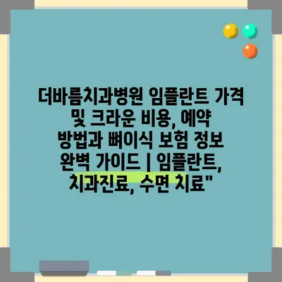 더바름치과병원 임플란트 가격 및 크라운 비용, 예약 방법과 뼈이식 보험 정보 완벽 설명서입니다. 치아의 손실은 많은 분들에게 큰 고민거리가 됩니다. …