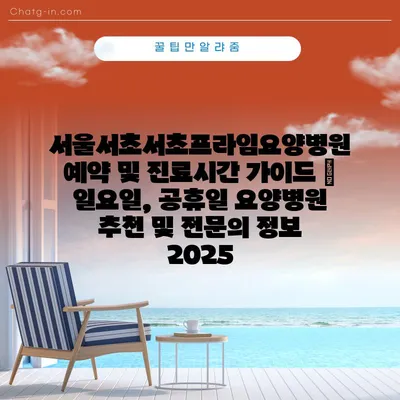 서울서초서초프라임요양병원 예약 및 진료시간 가이드 | 일요일, 공휴일 요양병원 추천 및 전문의 정보 2025에 대해 알아보겠습니다. 서울서초서초프라임요양병원은 환자 중심의 서비스를 …
